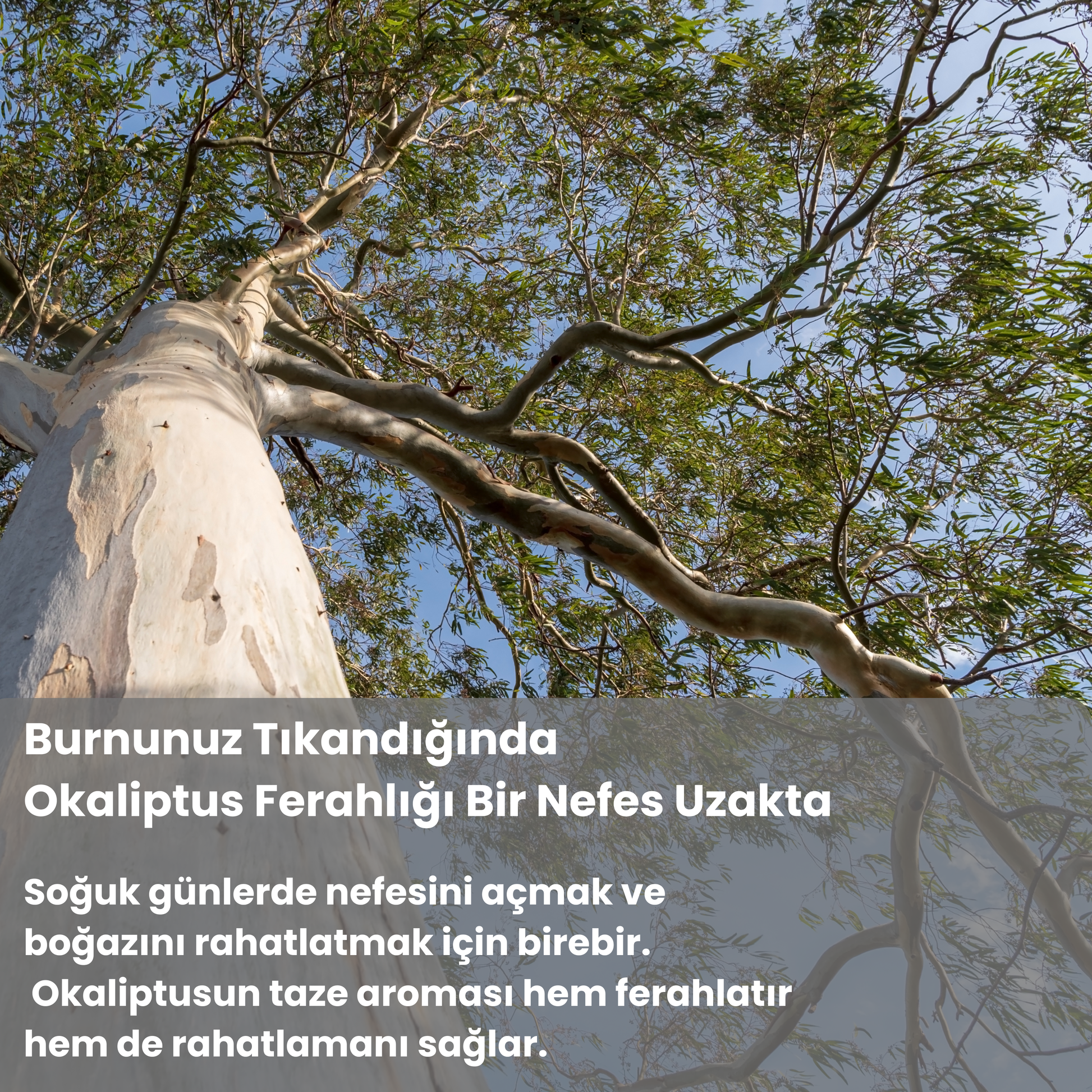 Soğuk günlerde nefesini ve burnunu açmak, boğazını rahatlatmak için birebir. Okaliptusun taze aroması hem ferahlatır hem de rahatlamanı sağlar.